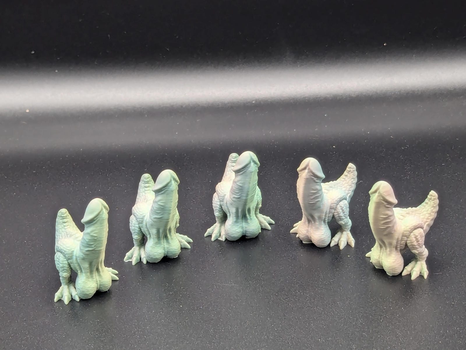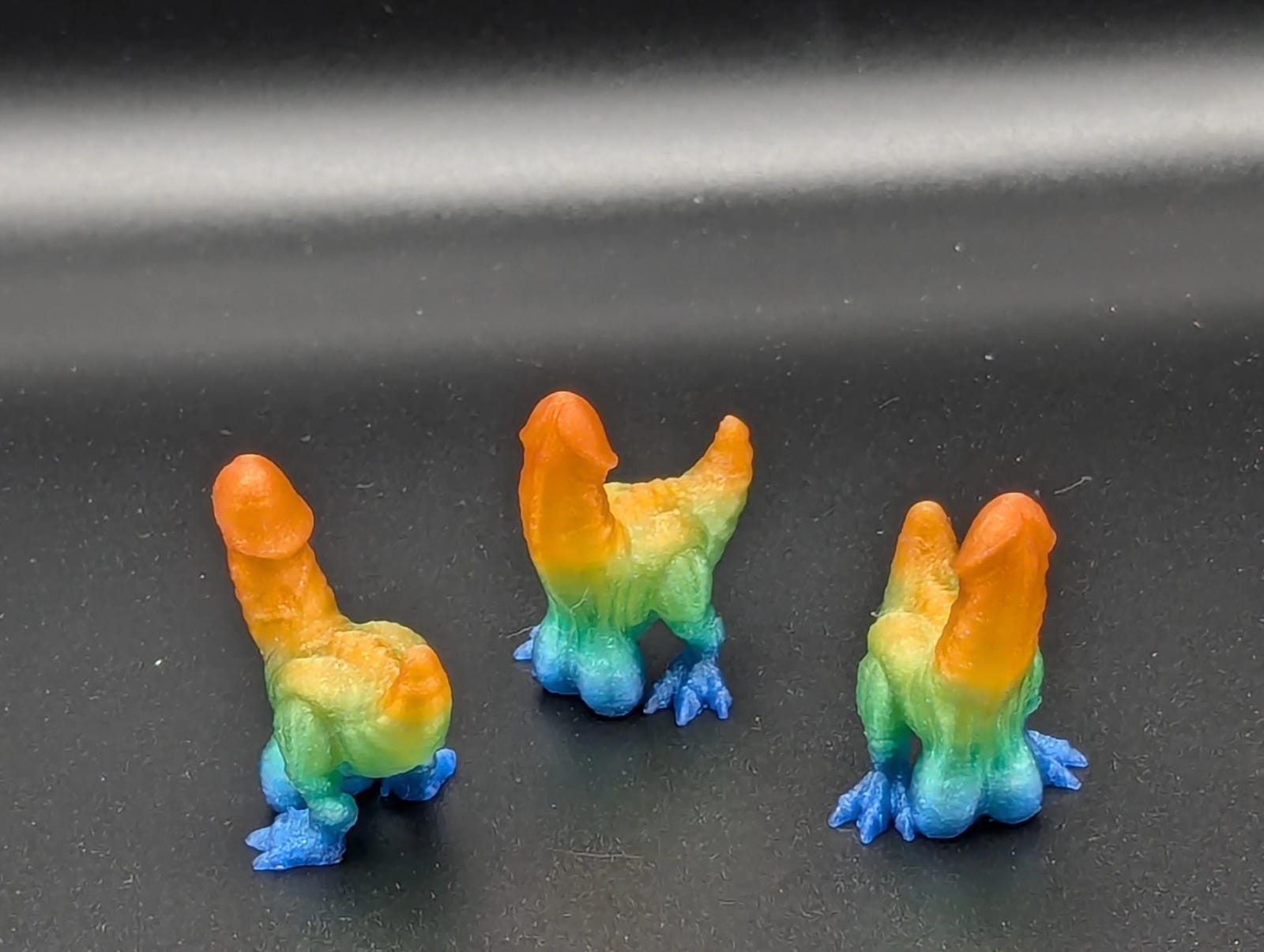Teeny Tiny little ones! Hide them in a house of someone you love, hide them in a house of someone you do not love. Hilarious cute little dinos. Each pack comes with 10 randomly colored dinos! Solid colors, glow in the dark, rainbow, gradients, who knows.